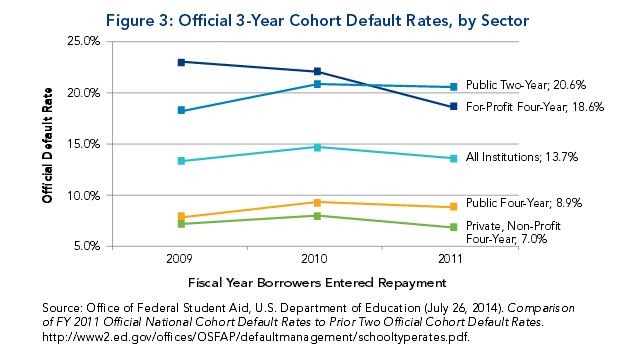 One of the major findings was that students were more likely to default if they were not making progress toward the completion of an Associates Degree or other types of diplomas/certifications. According to the report